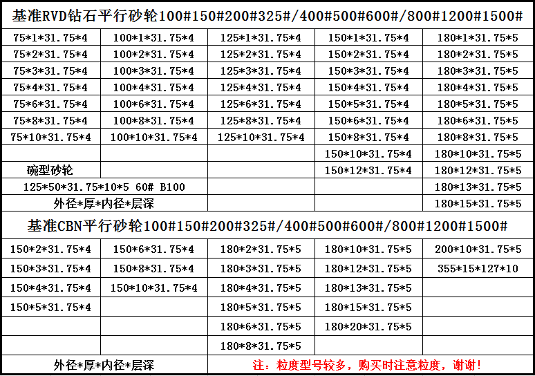 砂輪規(guī)格表: